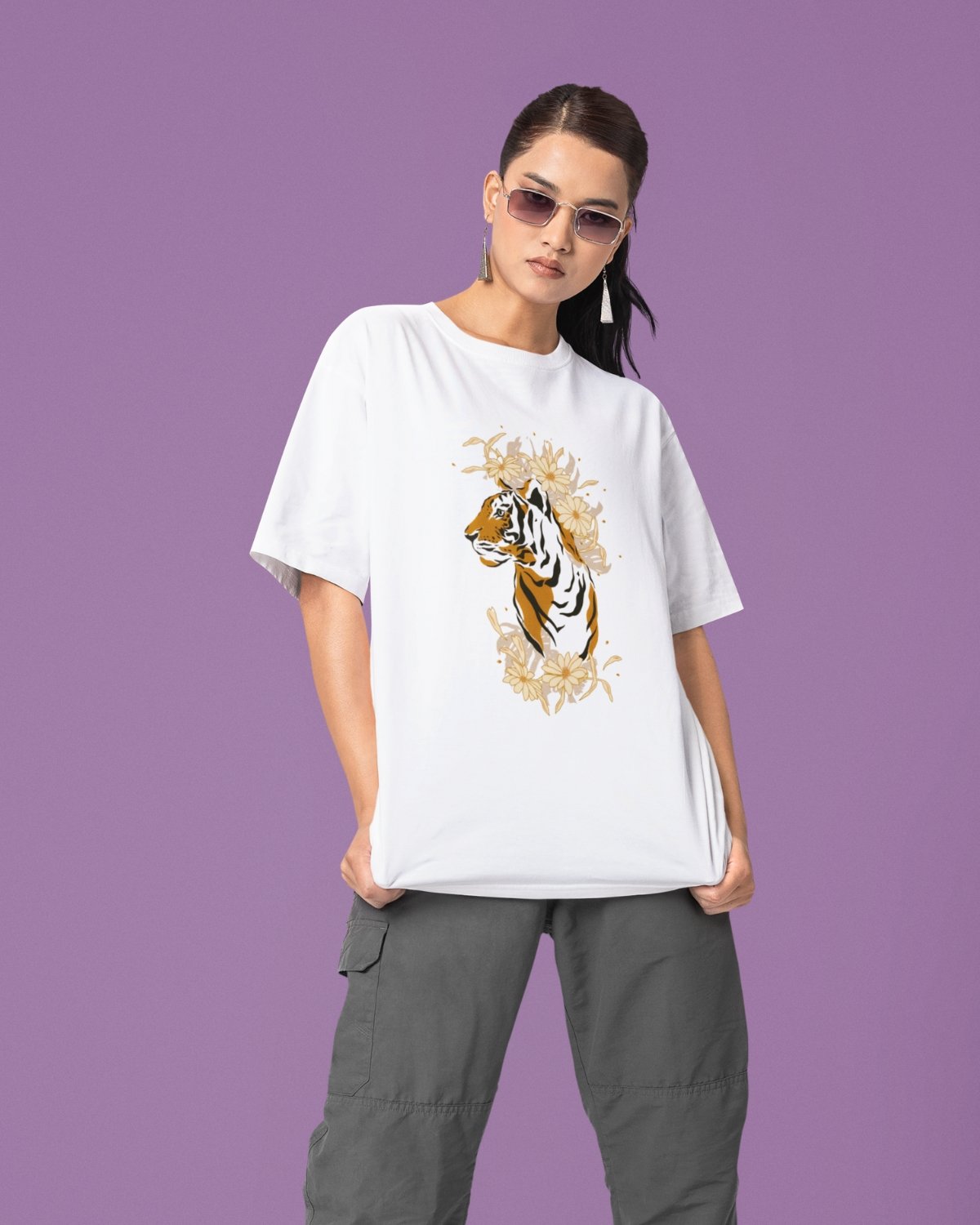 Embrace fierce elegance with the Floral Tiger Tee. This design captures a unique balance of strength and serenity, featuring a detailed tiger illustration softened by a cascade of delicate floral accents. The artwork, printed with high-fidelity DTF technology, brings the powerful yet graceful spirit of the tiger to life. Crafted from our premium 220gsm heavyweight cotton and treated with a signature bio-silicon wash, this tee offers an exceptionally soft feel and a perfect oversized drape. It’s a wearable piece of art for the modern wardrobe, blending wildlife aesthetics with streetwear style.