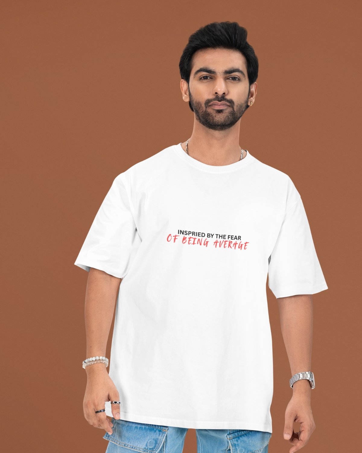 Make the grind the aesthetic. This clean, minimal tee carries a sharp chest print—“Inspired by the fear of being average”—set in bold type with a hand-script strike for emphasis. Printed using high‑fidelity DTF on dense 220gsm cotton, it delivers crisp detail and a structured drape, then finished with bio + silicon washes for day‑one softness. Built for builders, closers, and anyone allergic to average.