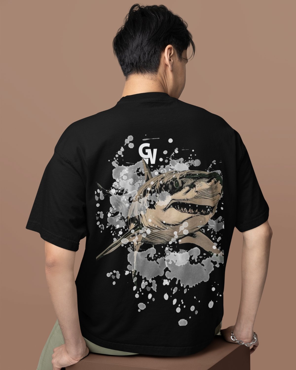 Rule the streets with the same confidence as the ocean’s ultimate apex predator. This tee features a stunningly detailed shark graphic, bursting from a dynamic splash of grey and white, creating a powerful sense of motion and raw energy. The design combines realistic wildlife illustration with an edgy, graffiti-style aesthetic, making it a true statement piece. Printed with high-fidelity DTF for a crisp, textured finish on our signature 220gsm heavyweight cotton, this tee is built for those who aren’t afraid to stand out. The bio-silicon wash ensures an ultra-soft feel and a perfect, structured drape.